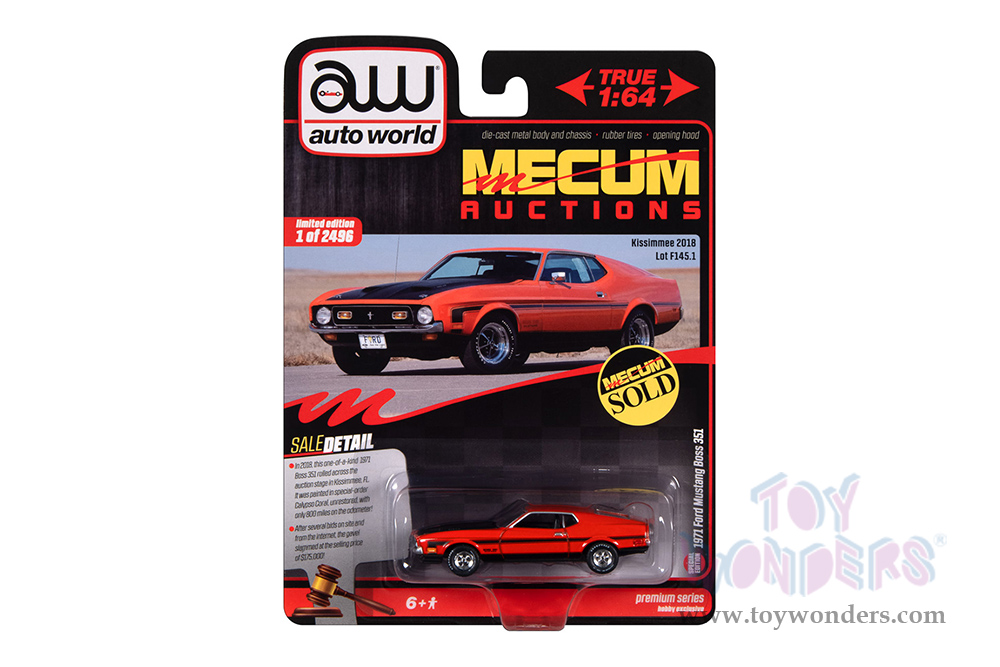 Auto World Premium - Ford Mustang Boss 351 "Mecum Auctions" (1971, 1/64 scale diecast model car, Calypso Coral) AWSP159/24