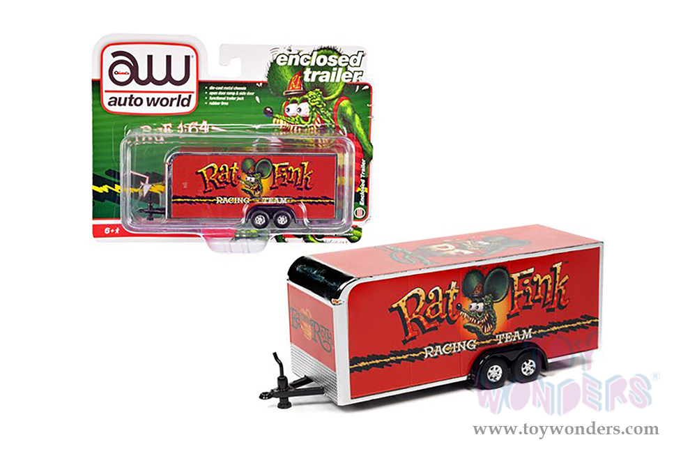 Auto World - Rat Fink Enclosed Car Trailer (1/64 scale diecast model car, Red) AWSP093/24
