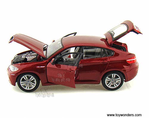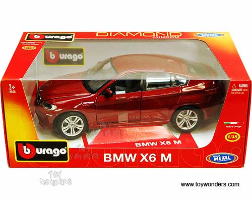 11032R BBurago Diamond - BMW X6 M Hard Top. 1:18 scale diecast collectible model car. This BMW X6M is a 9.5"L x 3.75"W x 3.25"H die cast metal car with openable hood, doors & trunk. Italian design. The BMW X6 M is manufactured by BBurago. Item 11032 is in RED color. Individually packed in a window box. Box size: 11.75"L x 7"W x 4.75"H.