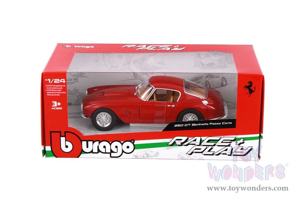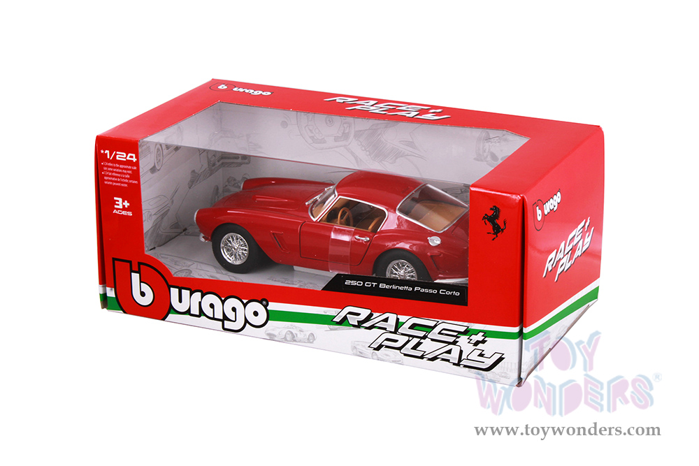 BBurago Ferrari Race & Play - Ferrari 250 GT Berlinetta Passo Corto (1/24 scale diecast model car, Red) 18-26025R