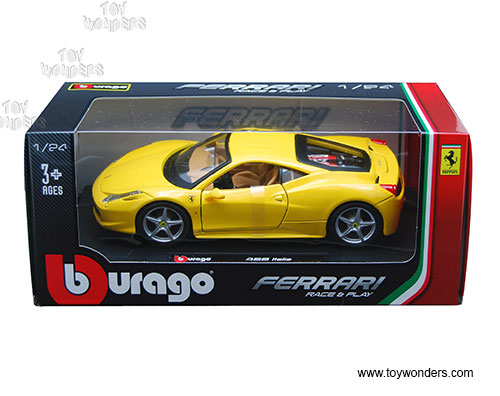 BBurago Ferrari Race & Play - Ferrari 458 Italia Hard Top (1/24 scale diecast model car, Yellow) 26003YL