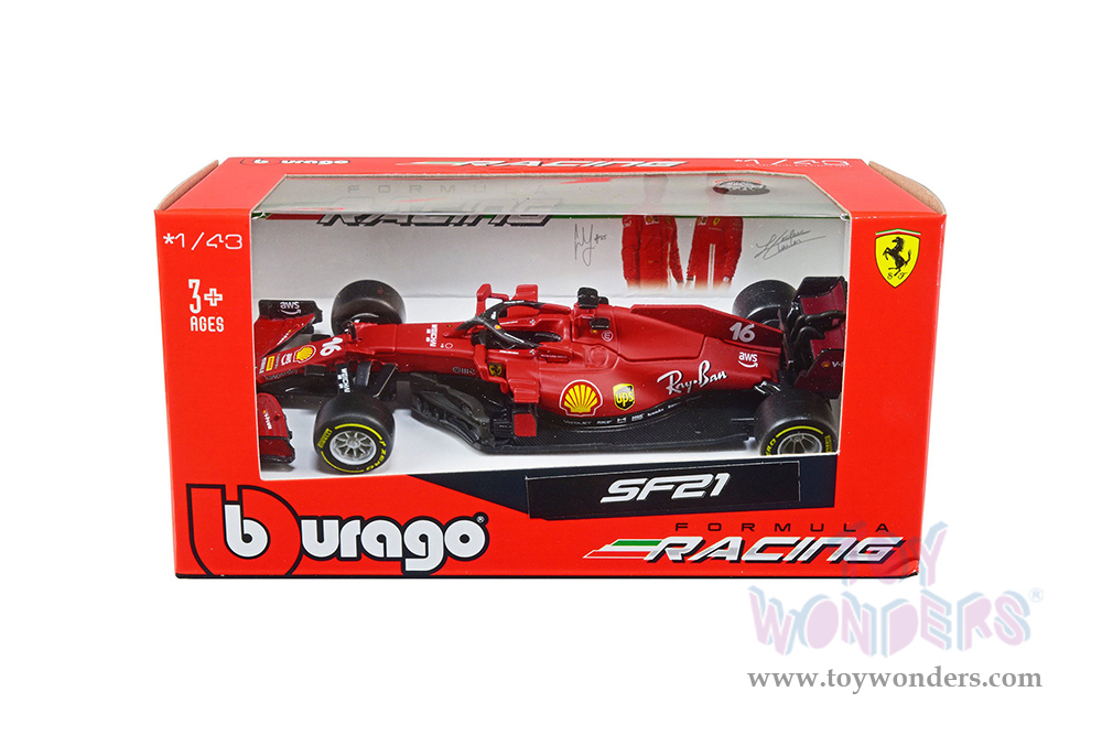 BBurago Ferrari Racing - Ferrari SF21 #16 Charles Leclerc Formula One F1 Car (2021) (1/43 scale diecast model car, Red) 36820