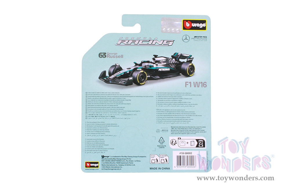 BBurago Formula Racing - Mercedes AMG Petronas W16 #63 George Russell Formula One F1 (2025) (1/64 scale diecast model car, Black/Gray) 18-58002/63