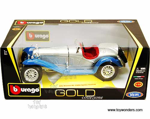 BBurago Gold - Alfa Romeo 8C 2300 Spider Touring Convertible (1/18 scale diecast model car, Silver & Blue) 12063SV