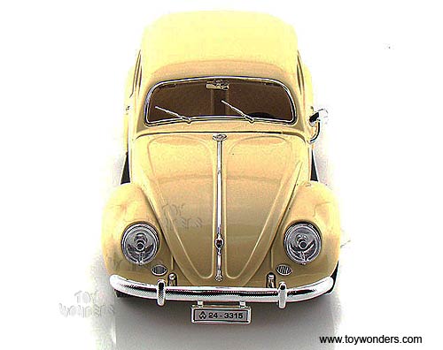 12029 BBurago Gold - 1955 Volkswagen Kafer Beetle Hard Top. 1:18 scale diecast collectible model car. This VW Kafer Beetle is a 9"L x 3.25"W x 3"H die cast metal car with openable hood, doors & trunk. Italian design. The 1955 Volkswagen Kafer Beetle is manufactured by BBurago. 12029 is in BEIGE color. Individually packed in a window box. Box size: 11.75"L x 7"W x 4.75"H.