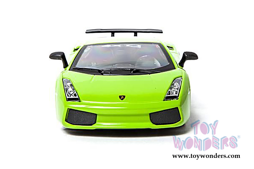 22108GN BBurago - 2007 Lamborghini Gallardo Superleggera Hardtop. 1:24 scale diecast collectible model car. This Lamborghini Gallardo is a 7.25"L x 3"W x 2.25"H diecast metal car with openable doors and trunk. Italian design. The Lamborghini Gallardo is manufactured by BBurago. Item 22108GN is in GREEN color. Individually packed in a window box. Box size: 9.75"L x 5"W x 4"H.