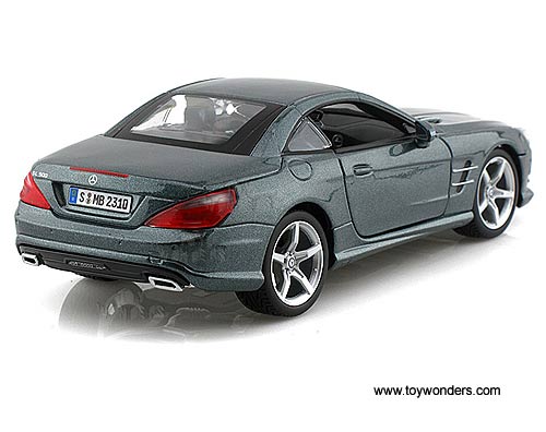 21067 BBurago - Mercedes-Benz SL 500 Hard Top. 1:24 scale diecast collectible model car. This Mercedes Benz SL500 is a 7.25"L x 3"W x 2"H die cast metal car with openable hood & doors. Italian design. This Mercedes-Benz SL-500 is manufactured by BBurago. 18-21067 is in GREY color. Sits on a display plaque. Individually packed in a window box WB. Box size: 9.5"L x 5"W x 4"H.