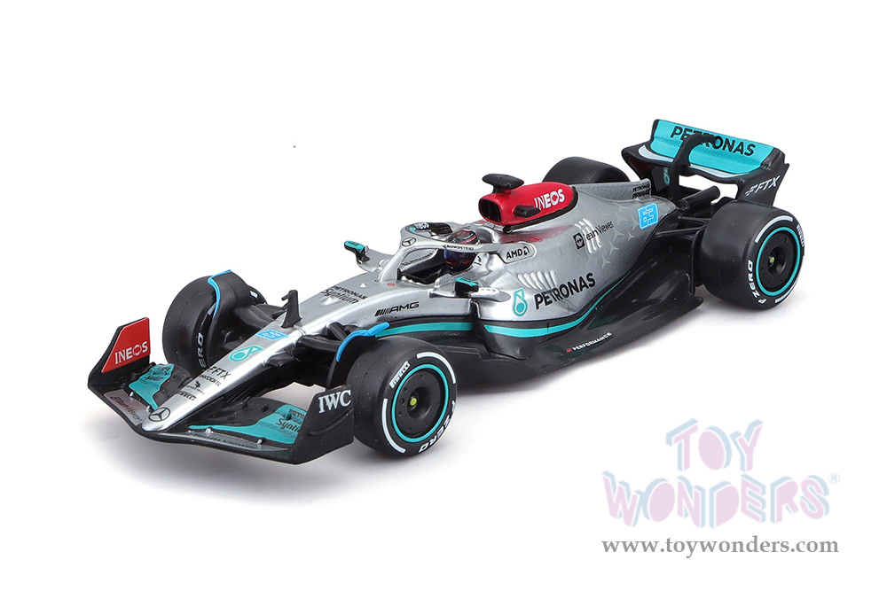 Bburago Formula Racing - AMG Petronas F1 Team #63 George Russell with Driver Formula One F1 W13 E Performance (2022) (1/43 scale diecast model car, Silver) 18-38066/RUS