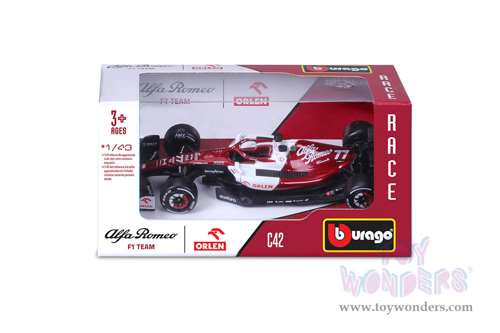 Bburago Formula Racing - Alfa Romeo F1 Team Orlen C42 #77 Valtteri Bottas Formula One F1 Bahrain GP (2022) (1/43 scale diecast model car, Red/White) 18-38067/BOT
