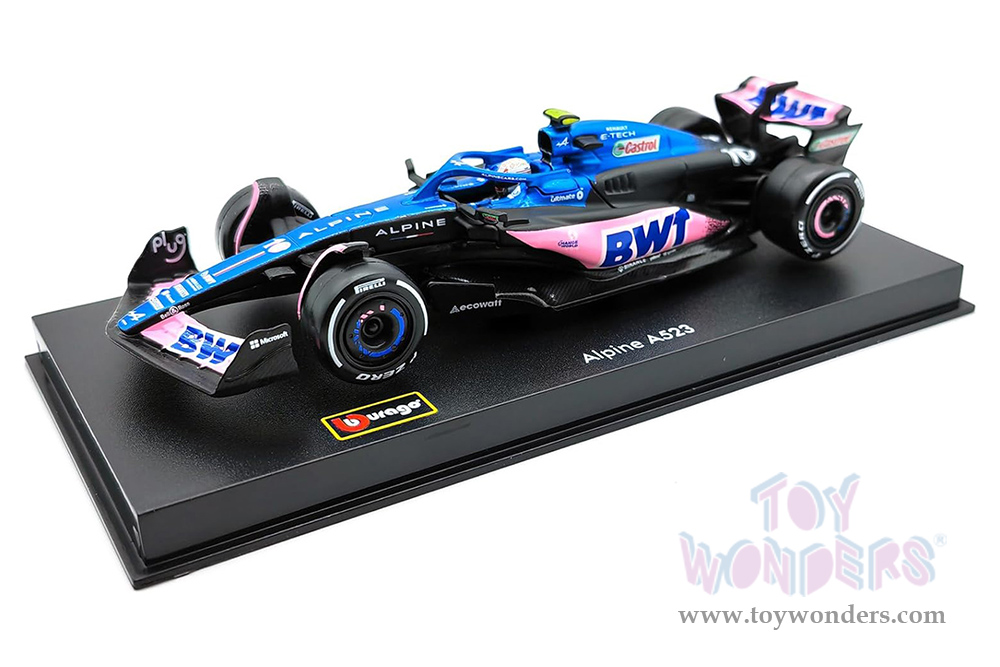 Bburago Formula Racing - BWT Alpine A523 #10 Pierre Gasly with Driver Formula One F1 (2023) (1/43 scale diecast model car, Blue/Black/Pink) 18-38073/10