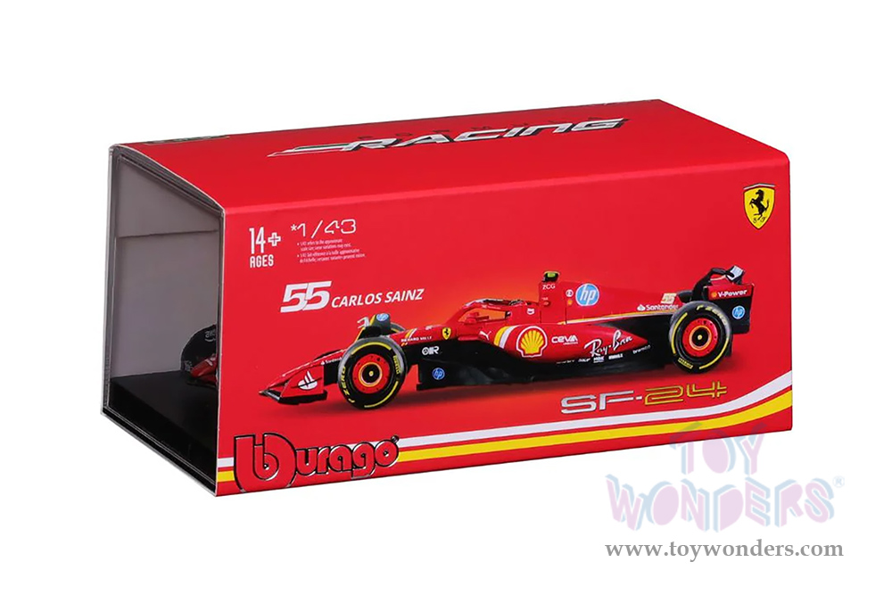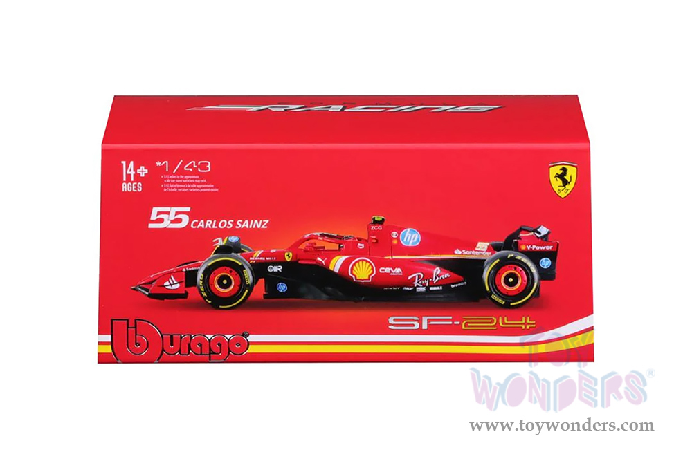 Bburago Formula Racing - Ferrari SF-24 #55 Carlos Sainz with Driver Formula One F1 Scuderia Ferrari (2024) (1/43 scale diecast model car, Red) 18-36843/55