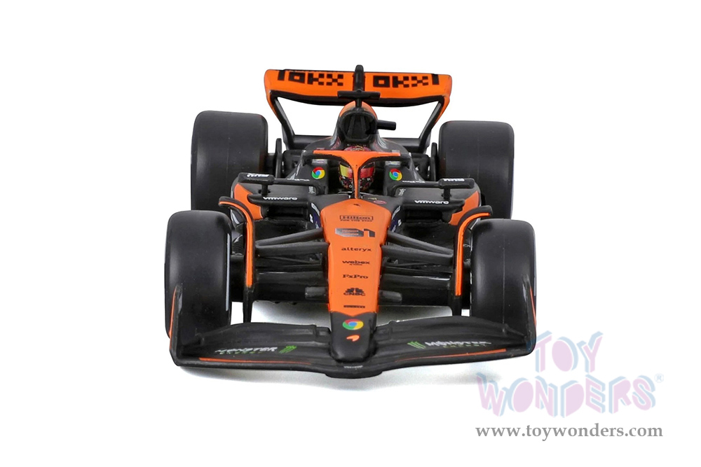 Bburago Formula Racing - McLaren F1 Team #81 Oscar Piastri with Driver "OKX" Formula One F1 Miami GP (2024) (1/43 scale diecast model car, Black/Orange) 18-38215/81
