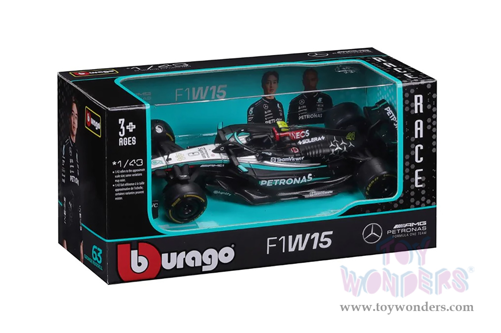Bburago Formula Racing - Mercedes AMG Petronas F1 Team #44 Lewis Hamilton Formula One F1 W15 E Performance (2024) (1/43 scale diecast model car, Black) 18-38208/44