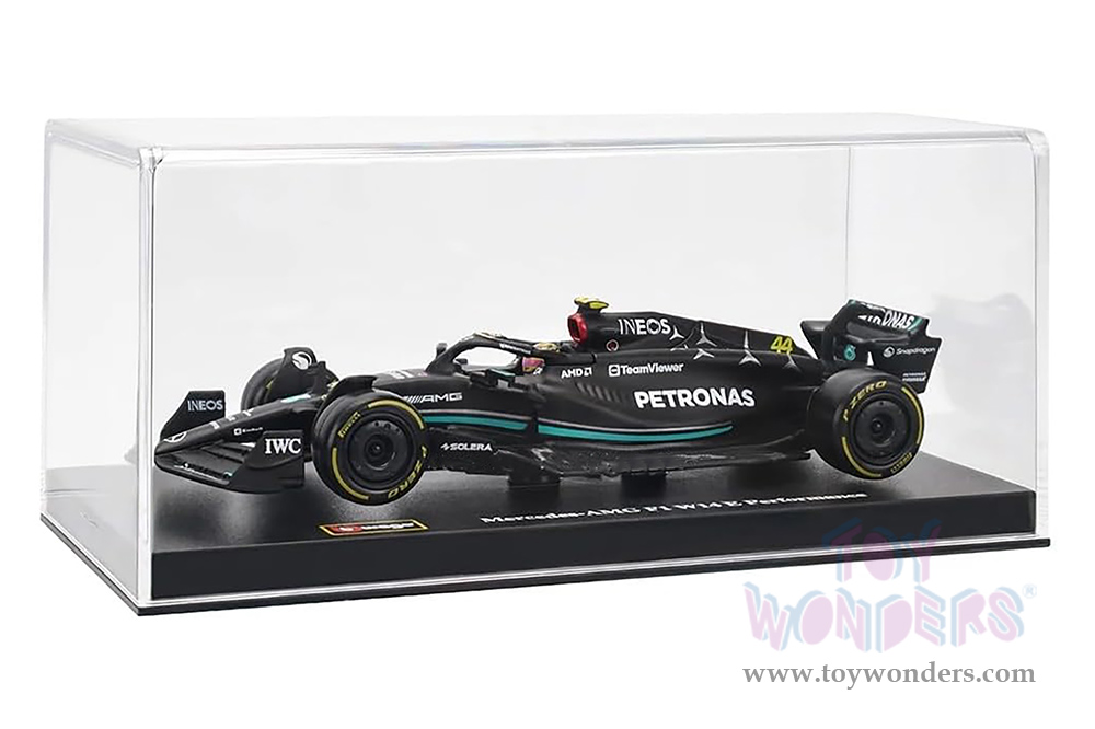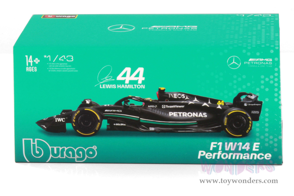 Bburago Formula Racing - Mercedes AMG Petronas F1 Team #44 Lewis Hamilton with Driver Formula One F1 W14 E Performance (2023) (1/43 scale diecast model car, Black) 18-38081/44
