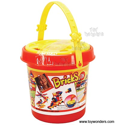 90102 Blocks (176 pcs). 6.75" pail of building blocks for ages 4 years and up. Blocks size range: 0.75" to 2.25"L.