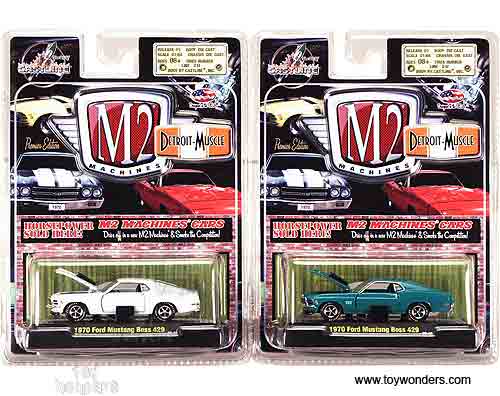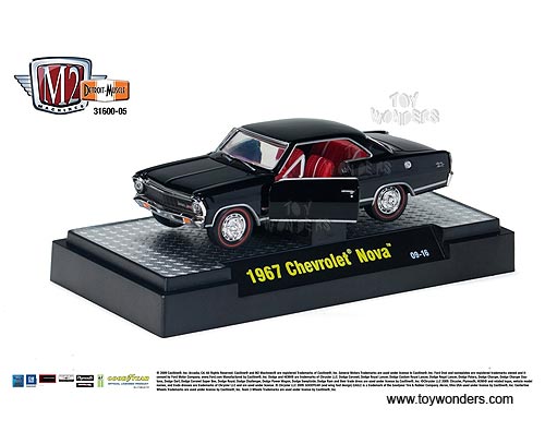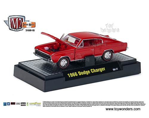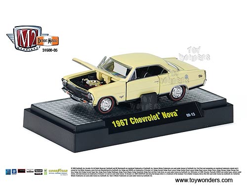 31600/05 Castline M2 Machines - Detroit Muscle Cars Release 3. 1:64 scale, 3" long die cast model cars with openable doors and hood, detailed engine and interior. GM is a trademark of the General Motors Corporation. Each car sits on a display plaque, and individually blister carded. Card size is 5.5" x 7.25". Manufactured by Castline. 6 pcs per inner. Assortment includes: