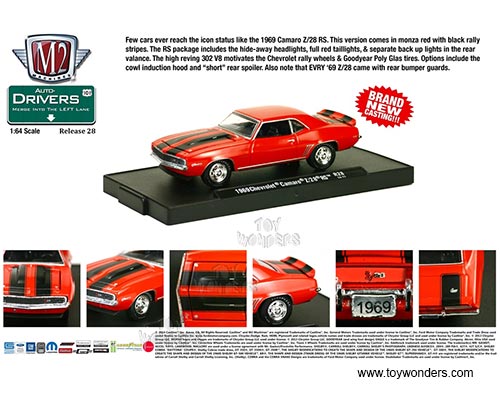 11228/28 Castline M2 Machines - Drivers Release 28. 1:64 scale diecast collectible models, 3" long die cast model cars with openable hood & doors. GM is a trademark of the General Motors Corporation. Each car sits on a display plaque, and individually blister carded. Card size is 5.5" x 7.25". Manufactured by Castline. 6 pcs per inner. Assortment includes: