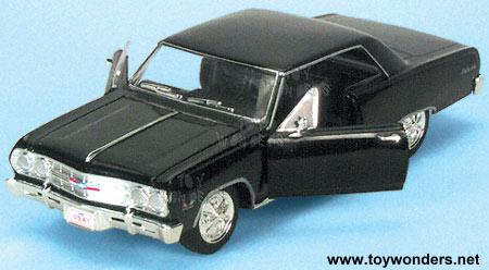DP8022/24 Chevrolet Chevelle Malibu (1965) 1:24 scale. This 1965 Chevy Malibu is 7" long x 3"W x 2.25"H. Diecast metal, free-wheeling hard-top 65 Chevy convertible with opening doors/hood in assorted colors. This 1965 Chevelle Malibu is packaged 4 pcs per display box. 12 pcs per inner box. This 65 Chevy Malibu is manufactured by Saico.
