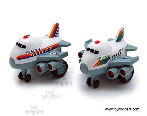 303D City Movers - Mini Jet. 3.75" long friction powered airplanes. One small push gets them going. 12 pcs per display box. 36 pcs per inner box. Note that these planes are made of sturdy plastic and contains no diecast metal. High quality frictionized motor. One push goes a long way.