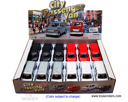 9951/4D City Passenger Van. This Passenger Van is a 4.75"L x 1.75"W x 2"H diecast and plastic car with pull back action and openable back doors. 12 pcs per display box (2-layers) in assorted colors. Z8.