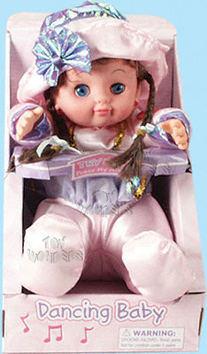 168E Dancing Shirley Doll (English) 14" musical doll moves her head and her earrings flash to the music. "Try me" box. Includes 3 "AA" batteries. Individually boxed. One piece per display.