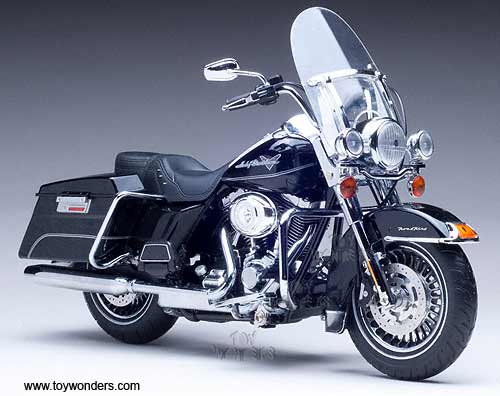 81118 Die-Cast Promotions - 2010 Harley-Davidson FLHR Road King Motorcycle. 1:12 scale diecast collectible models. This 2010 Harley-Davidson FLHR Road King Motorcycle is approximately 8" long, diecast metal, workable steering, workable/detailed suspension, kickstand. Extremely detailed engine and components. This bike is manufactured by Diecast Promotions. 81118 is in VIVID BLACK. Individually packed in a gift box. Mailer box size: 11.5"Lx 7.25"Wx 6"H.