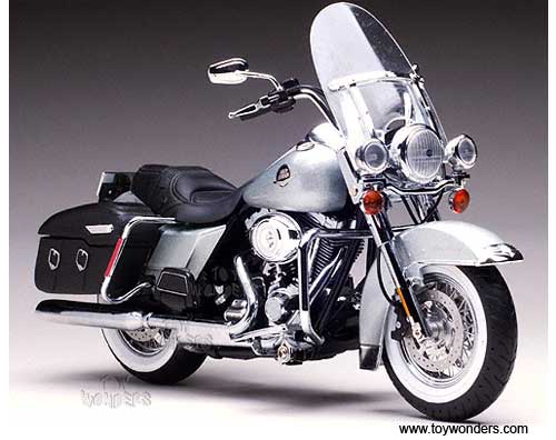 81124 Die-Cast Promotions - 2010 Harley-Davidson FLHRC Road King Classic Motorcycle. 1:12 scale diecast collectible models. This 2010 HD FLHRC Road King Classic Bike is approximately 8" long, diecast metal, workable steering, workable/detailed suspension, kickstand. Extremely detailed engine and components. This FLHRC Road King Classic Motorcycle is manufactured by Die-cast Promotions. 81124 is in Brilliant Silver color. Individually packed in a gift box. Mailer box size: 11.75"Lx 7.25"Wx 6"H.
