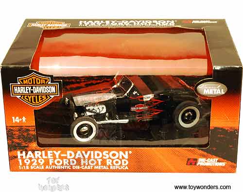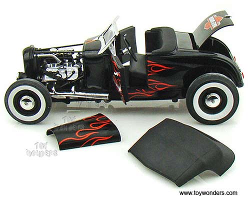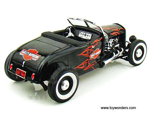 Die-cast-Promotions Harley-Davidson - Ford Hot Rod Convertible w/ Removable Bonnet (1929, 1/18 scale diecast model car, Black w/ Flames) 81071