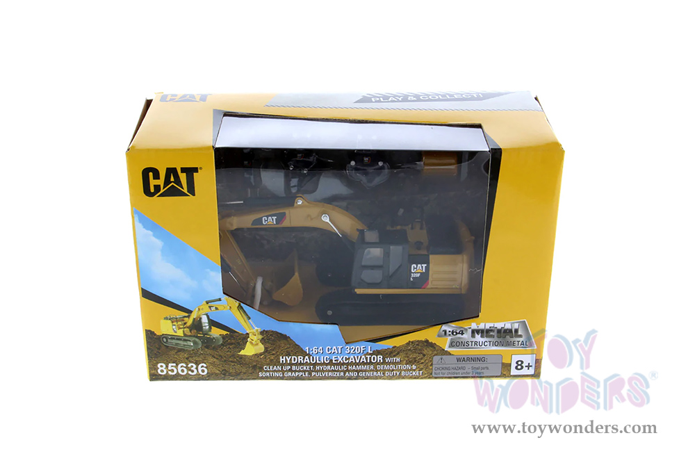 Diecast Masters - Caterpillar® 320F L Hydraulic Excavator with 5 Work Tools - Play & Collect! Series (1/64 scale diecast model car, Yellow) 85636 MAP: $34.99