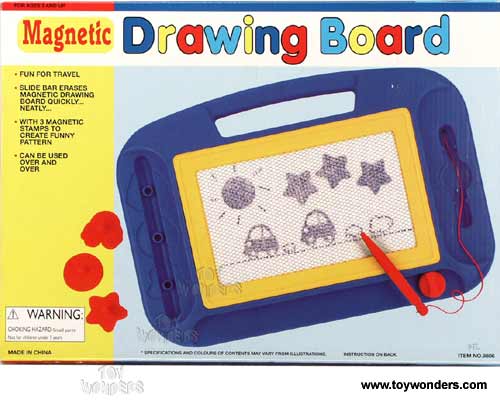 9806 Drawing Board. 13.5"x 9.25" drawing board that can be used over and over. Slide bar to quickly erase the drawing board. It comes with three stamps to create funny pattens. Box size: 14"Lx 10.25"Wx 1.25"H. 12pcs/inner.