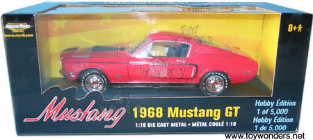 36768R ERTL-American Muscle. Ford Mustand GT (1968). 1:18 scale. diecast metal car with opening doors/hood. steerable front wheel. Display stand. Limited Hobby edition 1 of 5,000. Case pack: 6 pcs. $18.00/pcs in caselot. RED color.