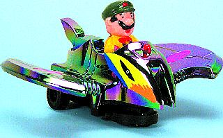 380 Eagle King. 6" musical bump-n-go car. With alternative flashing dome lights & flapping wings. Requires 2"AA" batteries. Box size: 6"Lx3.5"Wx4"H.