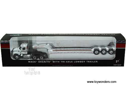 First Gear Case IH Agriculture - Mack Granite w/ Tri-Axle Lowboy Trailer (1/64 scale diecast model car, White) 60-0196