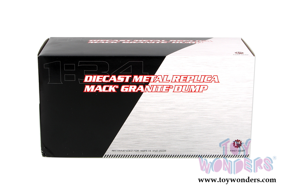 First Gear - Mack Granite Dump Truck (1/34 scale diecast model car, Red/White/Blue) 10-3994