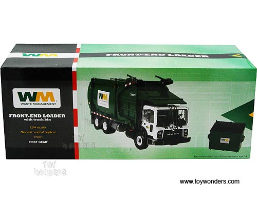 First Gear Waste Management - Mack TerraPro Front Load Refuse Truck with Bin (1/34 scale diecast model car, White) 10-4001