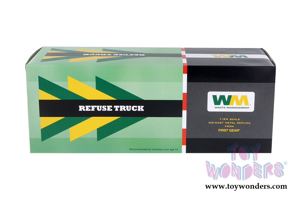 First Gear Waste Management - Mack TerraPro with Side Load Refuse with Carts (1/34 scale diecast model car, White/Green) 10-4004A