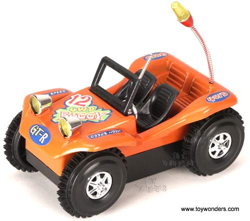 001A Flip-Over Buggy. 7" long, flip-over dune buggy with light. In assorted colors. Requires 2 "C" batteries. Box size: 7"Lx 4.25"Wx 3.25"H. 24 pcs/inner. Note: This item contains no any diecast metal.