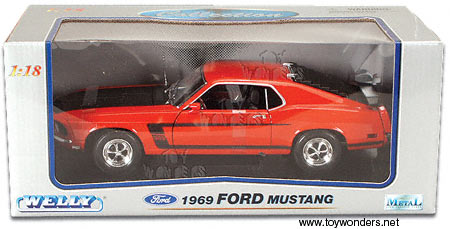 2516RD WELLY. Ford Mustang (1969) Scale: 1:18 Dimensions: 10"Lx3.5"Wx3"H 1969 Ford Mustang die cast muscle car features opening doors/hood, steerable front wheel, and detailed component. Display stand included. Manufactured by Welly 6 pcs per inner box Color: Red