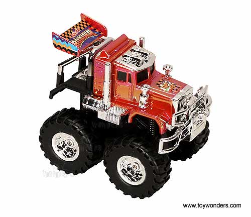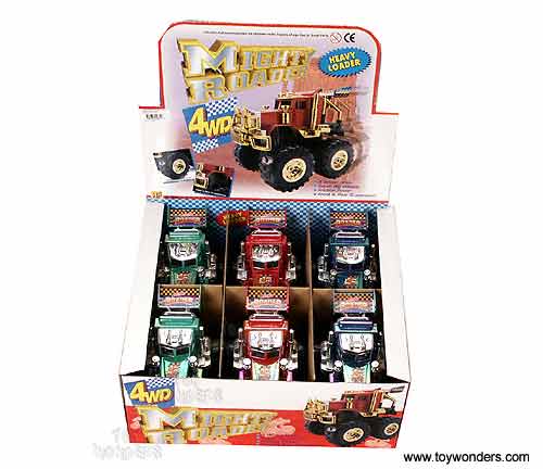 9804D Friction Mighty Roader. This 6" long x 4.5"W x 5.25"H four wheel friction powered tractor trailer truck comes with large wheels and shock springs for front and rear suspension. 6 pcs per display box and in assorted colors. 24 pcs per inner box.