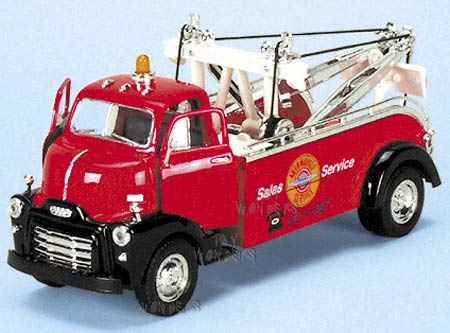 8151D GMC Wrecker (1952) 1:34 scale. This 1952 General Motors Wrecker is a 7" long, diecast metal, free wheel, tow truck with opening doors, tool box, and movable tow. This 52 GM Wrecker tow-truck is manufactured by Superior/Sunnyside. 4 pcs per display box. 12 pcs per inner box.