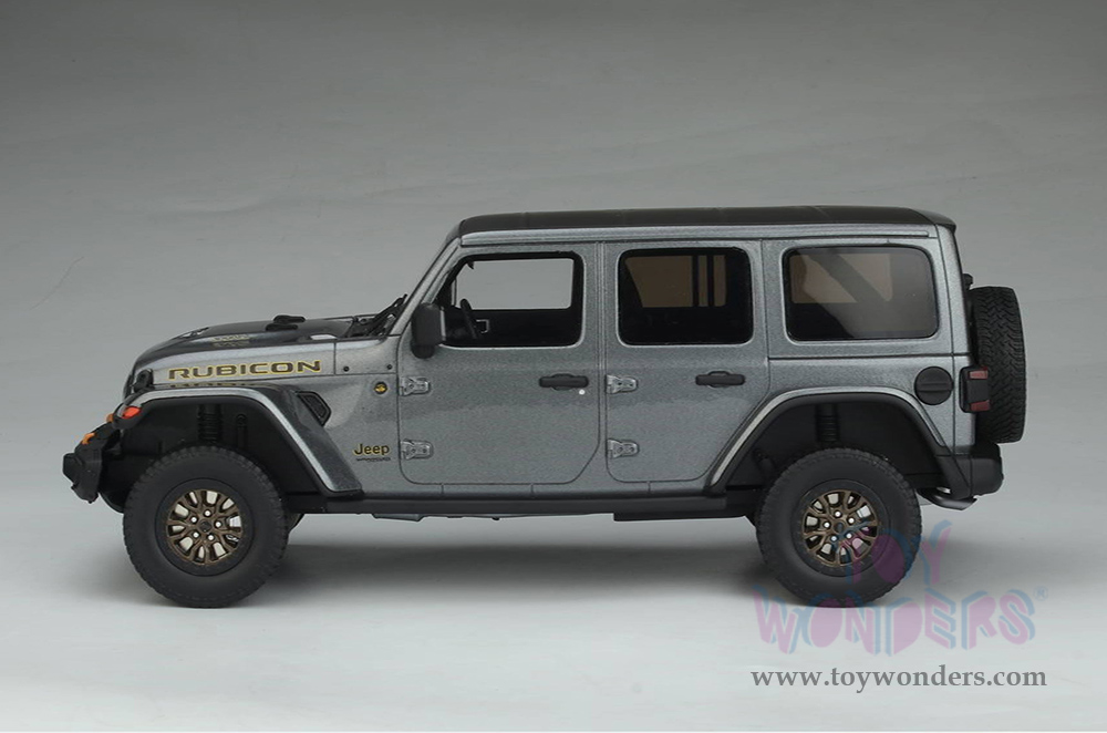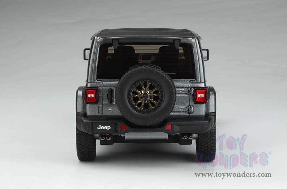 GT Spirit/ACME USA Exclusive - 2021 Jeep® Wrangler Rubicon 392. 1:18 resin model collectible model car. This is an 11"L x 5"W x 4"H resin car. Real rubber tires, detailed interior, and exterior. This Jeep® is manufactured by GT Spirit for ACME. Box size is 15.25"L x 7.5"W x 7.25"H. Item US053 is GRANITE CRYSTAL GRAY. Car is not openable.