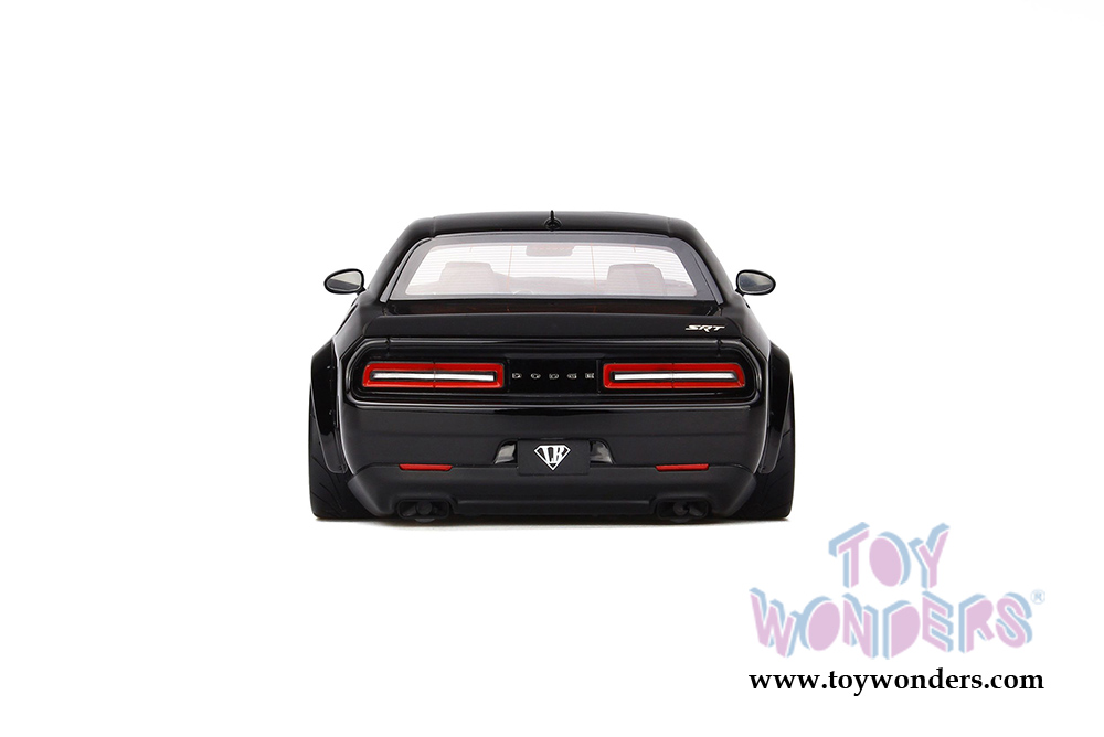 GT176 GT Spirit - Dodge Challenger SRT Tuned by LB Performance Hard Top. 1:18 resin model collectible model car. This is a 10.5"L x 4.5"W x 3.5"H resin model car with free wheels and workable steering. Highly detailed components (this car does not have any openings) This Dodge Challenger is manufactured by GT Spirit. Box size is 15.5"L x 7.5"W x 7.5"H. Item GT176 is in pitch BLACK with red rims. Limited Edition to 999 pcs.
