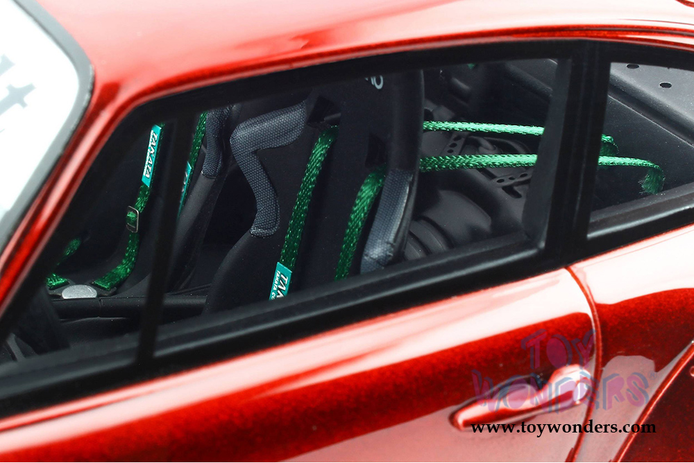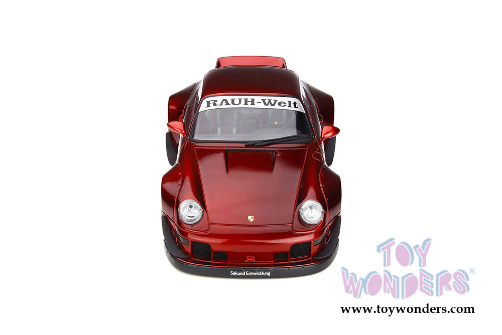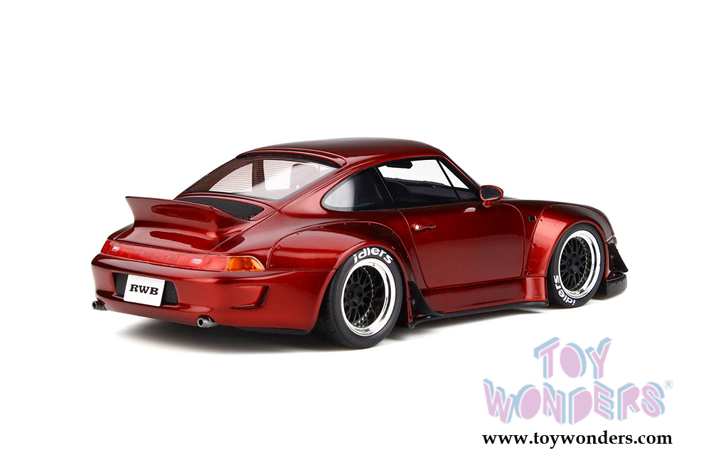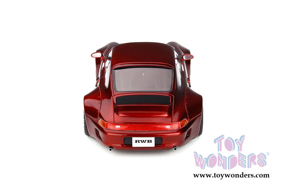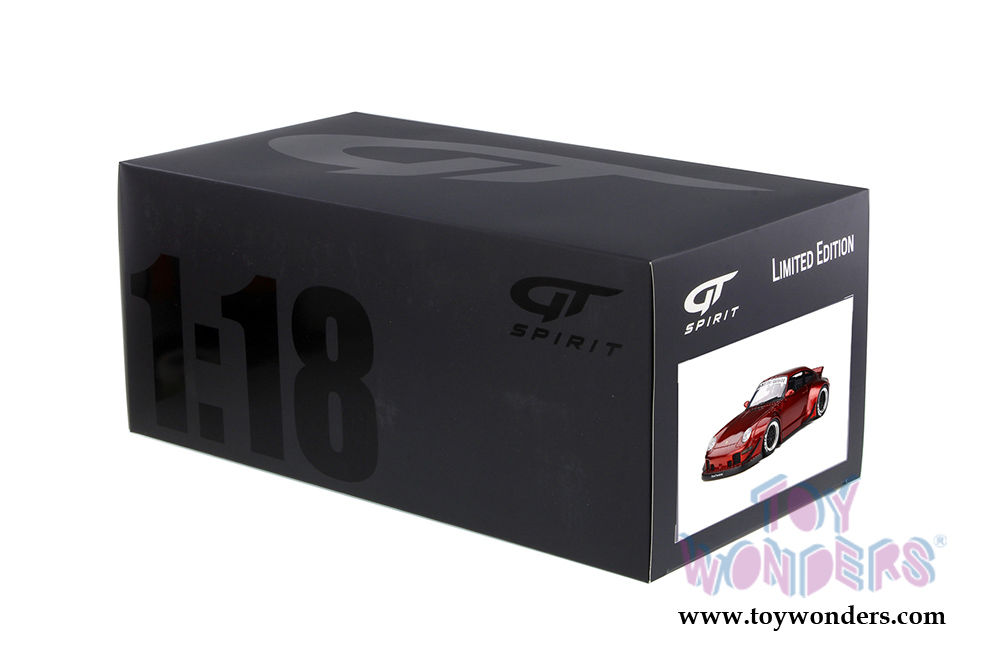 GT759 GT Spirit - Porsche RWB Duck tail Hardtop. 1:18 resin model collectible model car. This is a 10.5"L x 4.5"W x 3.5"H resin car. Real rubber tires, detailed interior and exterior. This Porsche is manufactured by GT Spirit. Box size is 13.5"L x 7.25"W x 6.5"H. Item GT759 is in Candy RED color. Limited Edition to 999 pcs. Car is not openable.