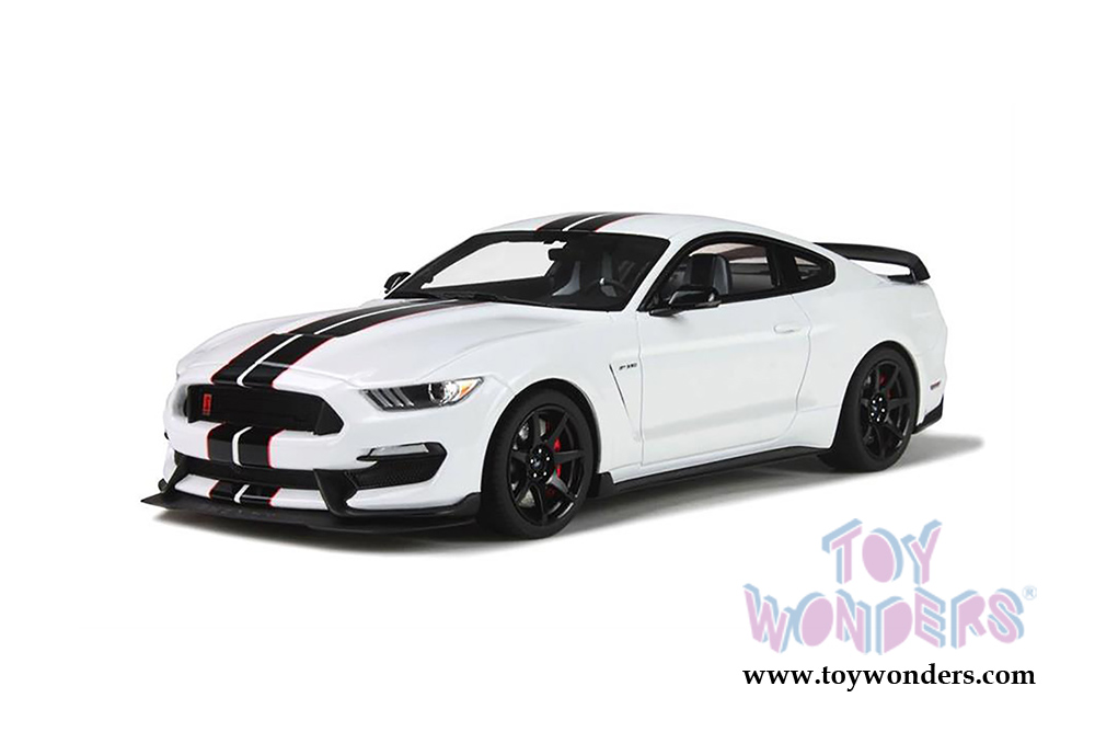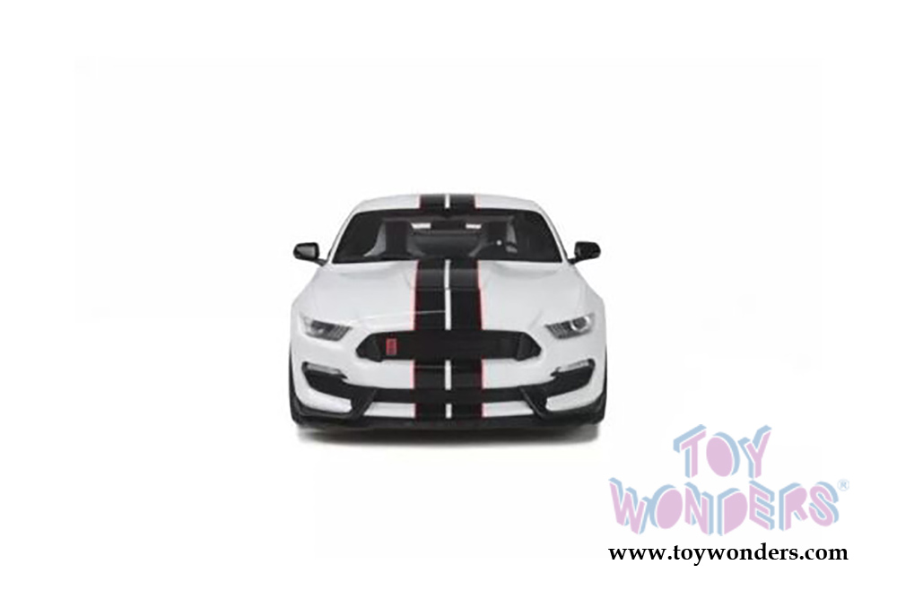 GT101 GT Spirit- Shelby Mustang GT 350 Hard Top. 1:18 scale resin collectible model car. This Ford Shelby is a 10.5"L x 4.5"W x 3.5"H resin model car with free wheels and workable steering. Highly detailed components. This Ford Shelby GT350 is manufactured by GT Spirit. Box size is 13"L x 7"W x 5.75"H. Item GT101 is in WHITE with Black stipes.