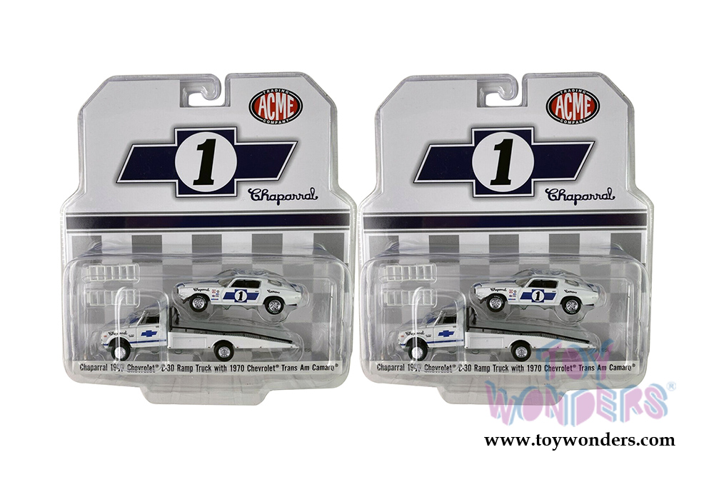 Greenlight/ACME - 1967 Chevrolet® C-30 Ramp Truck with 1970 Chevrolet® Trans Am Camaro® #1 (1/64 scale diecast model car, White/Blue) 51344