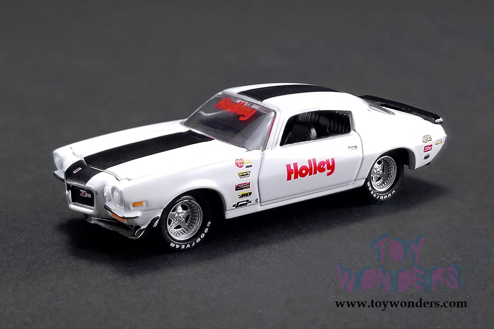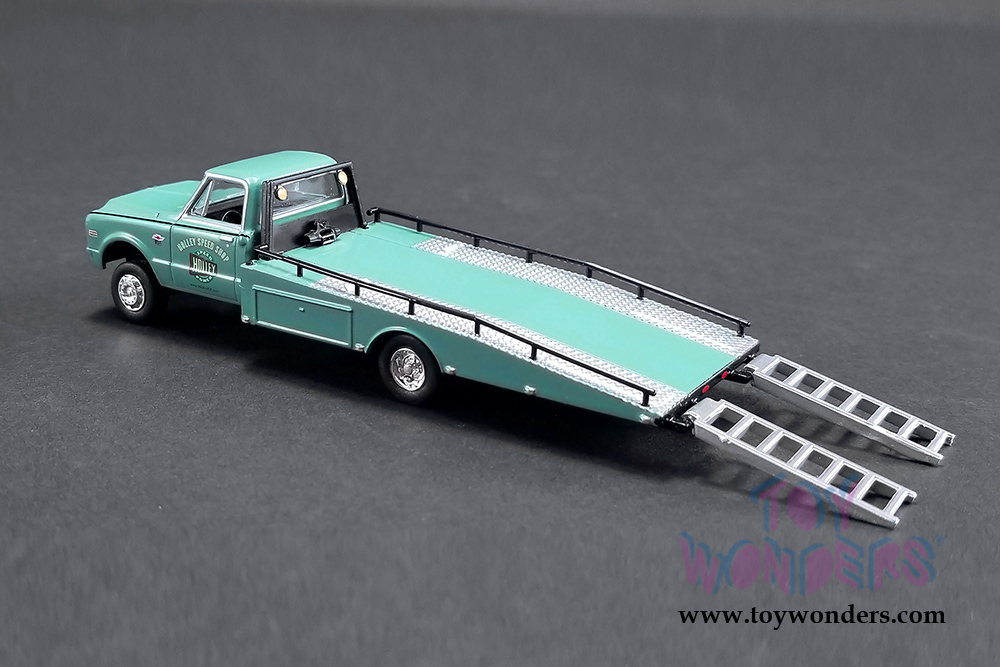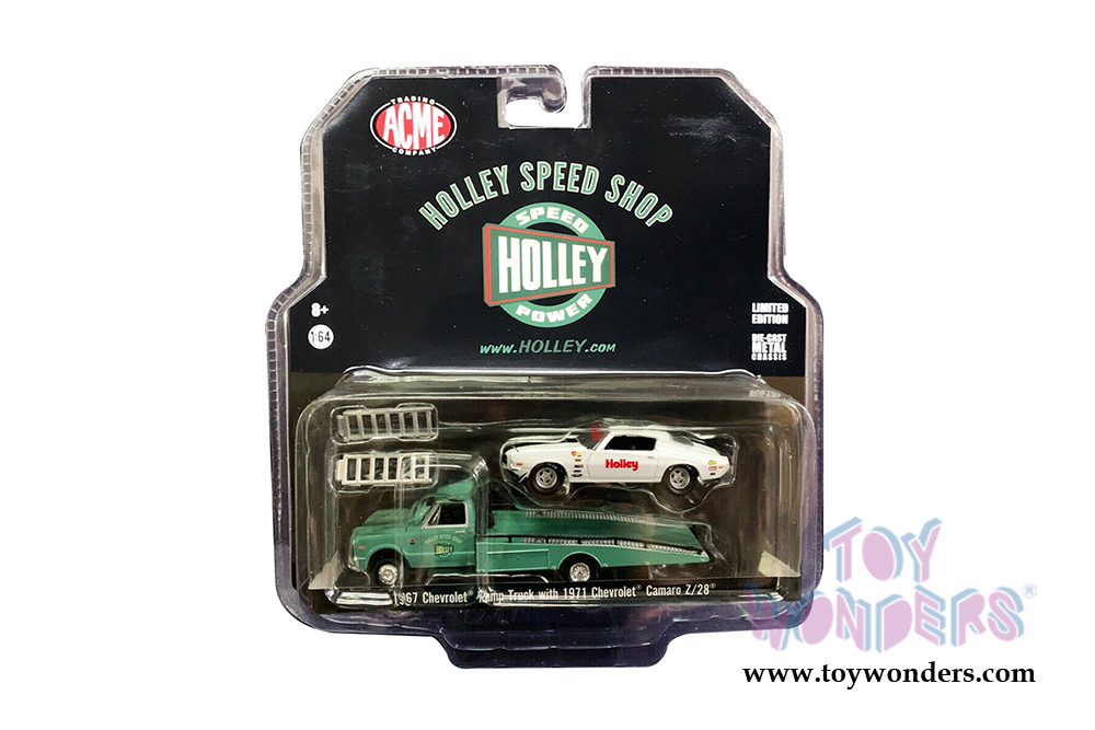 Greenlight/ACME - Holley Speed Shop | 1967 Chevrolet® Ramp Truck with 1971 Chevrolet® Camaro® Z/28 (1/64 scale diecast model car, Turquoise/White) 51247