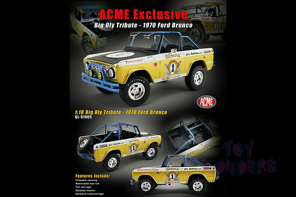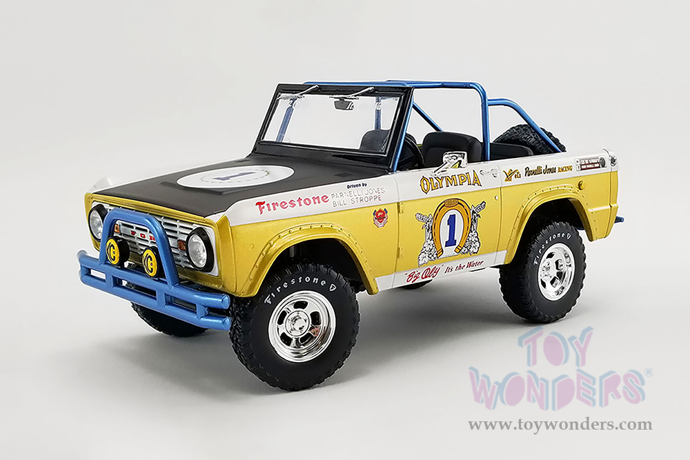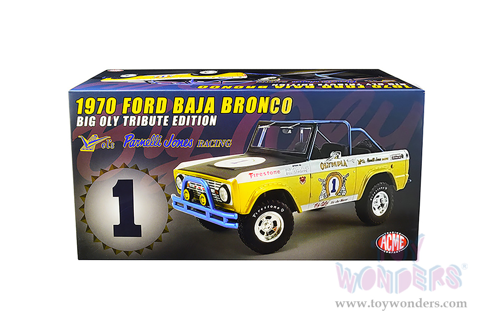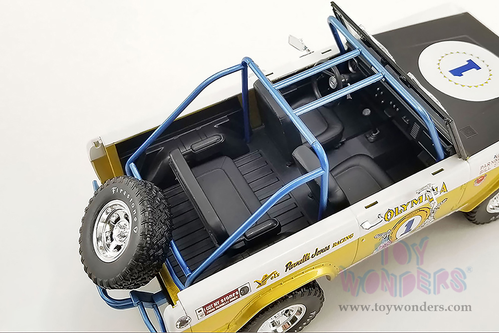 Greenlight/Acme | Ford Baja Bronco #1 "Big Oly Tribute Edition" Vel's Parnelli Jones Racing (1970, 1/18 scale diecast model car, Gold/White) 51405