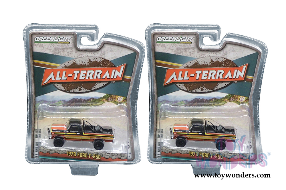 Greenlight - All Terrain Series 10 | Ford F-250 with Off-Road Parts Pickup Truck (1978, 1/64 scale diecast model car, Black/Red/Yellow) 35170C/48