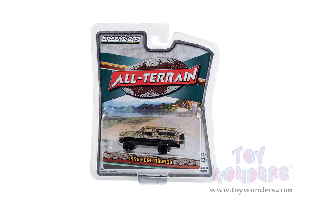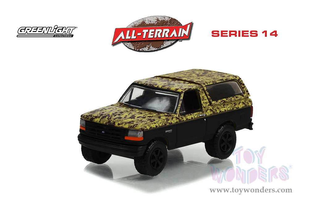 Greenlight - All Terrain Series 14 | Ford Bronco (Lifted) (1996, 1/64 scale diecast model car, Custom Matte Black and Camouflage) 35250C/48