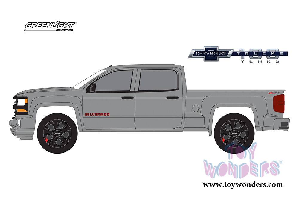 Greenlight - Anniversary Collection Series 6 | Chevrolet® Silverado™ Redline Edition 100th Anniversary of Chevy® Trucks (2018, 1/64 scale diecast model car, Silver) 27940F/48